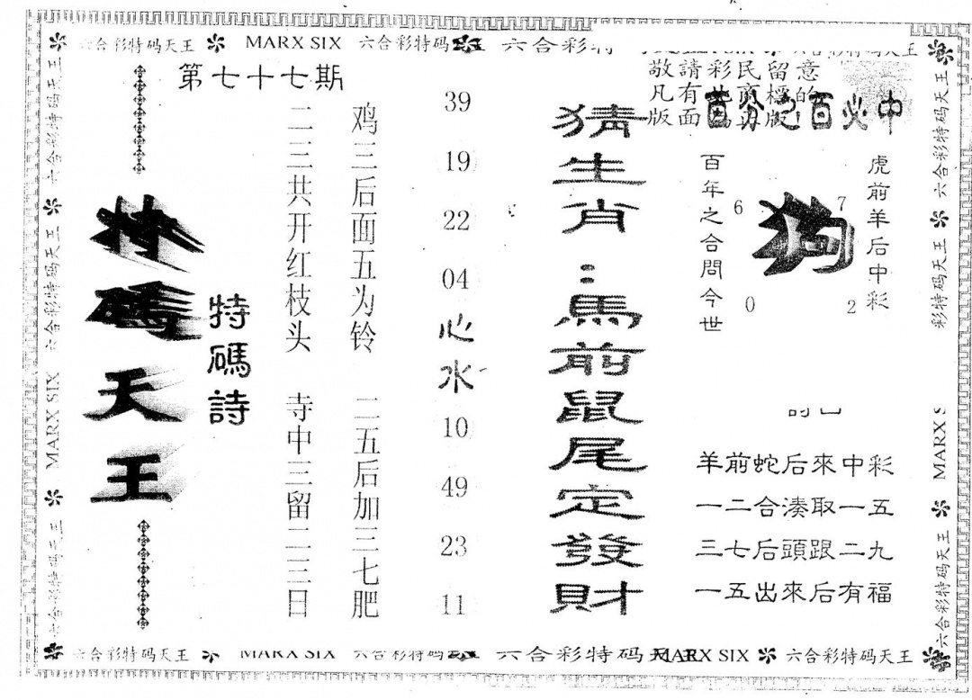 另版曾道人特码诗